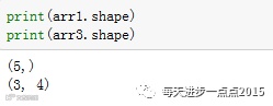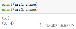 arr1和arr2为一维数组,arr3为二维数组,返回一个数组的行数和列数可使用shape方法,即