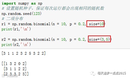 size参数可以用来控制生成的随机数的形状,r1就是一个10个长度的一维数组;r2就是一个3×5的矩阵。
