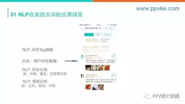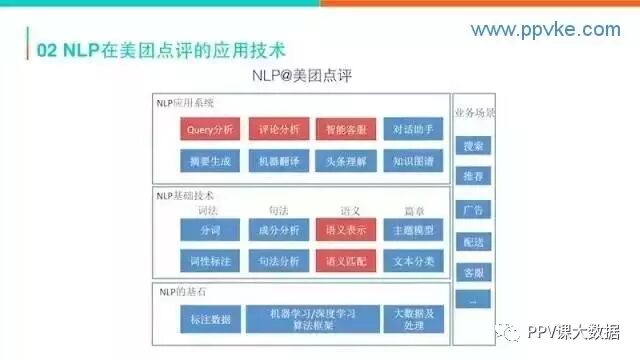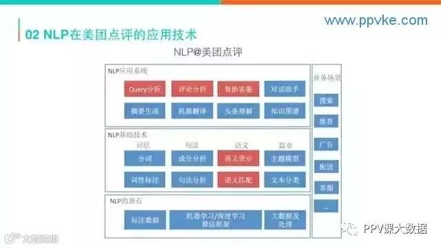 我们回顾一下今天我们讲一下NLP的应用场景,Query商家,用户大量的UGC评论、客服问答等等很多产品都需要用到NLP的技术,很多点评NLP有一些基础,还有就是NLP业务场景的应用方面的一些技术。