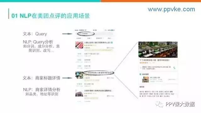 第一个场景,其实是在美团点评的APP上面,每天都有非常大量的用户词。这个里面有一个文本,我们可以理解成是用户的一些需求,从中可以做块状分析,统一性分析等等。这对我们的搜索系统性能的提升有很大的帮助。