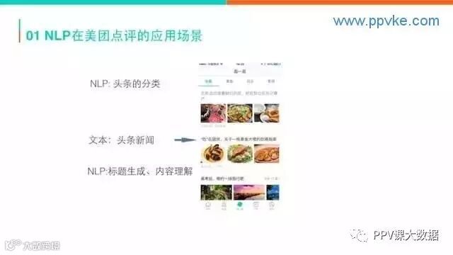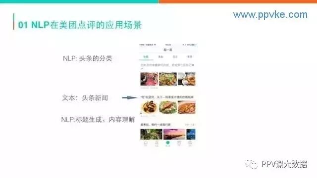另外,还有一部分是美团点评APP的一些新闻,比如标题的宣传、内容的理解、信息的抽取、POI的识别,等等。还有很多工作,比如整篇文章的分类,是分成美食还是影视等类别,其实也要用到NLP技术。