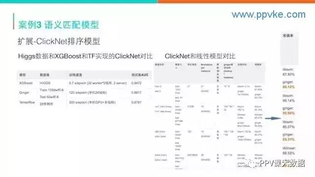 刚才说了,ClickNet在美团里面有很多的应用,比如说我们和XGboast和TF实现的ClickNet对比,ClickNet和线性模型对比,很多是远远比它好的,也就是说ClickNet在排序或者分类上面还是非常好的一个项目。