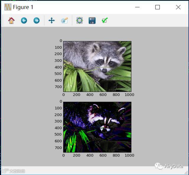 这里,我们通过动物面部照片(face)照片来创建数组,然后创建视图,随后修改。这里的动物面部照片的数组是从Scipy函数获得。