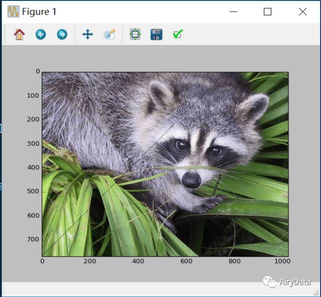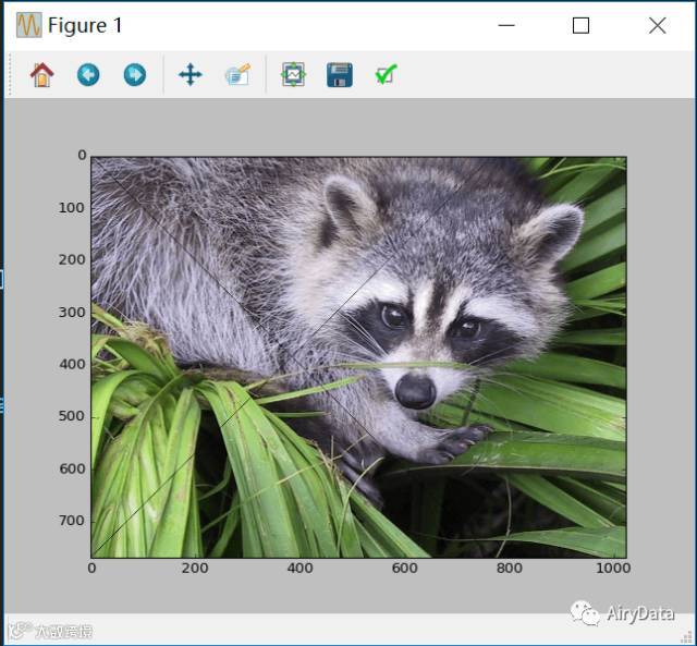 花式索引是一种传统的索引方法,它不使用整数或者切片。这里,我们将利用花式索引来把动物图片(face)对角线上的值全部置0,相当于沿着两条交叉的对角线画两条黑线。