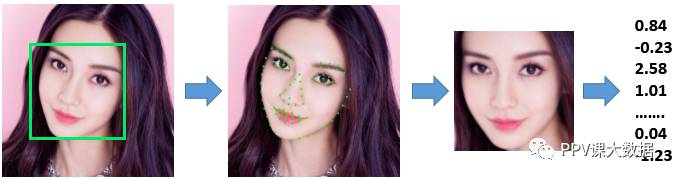 图4、人脸提特征过程(最右侧数值串为“人脸特征”)