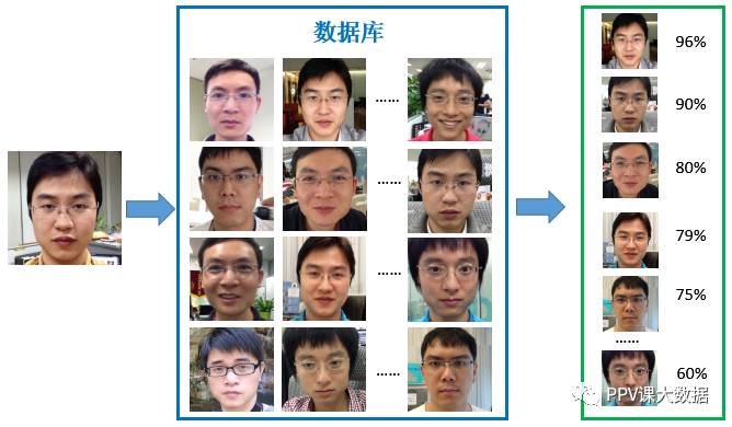 人脸检索通过将输入的人脸和一个集合中的说有人脸进行比对,根据比对后的相似度对集合中的人脸进行排序。根据相似度从高到低排序的人脸序列即使人脸检索的结果。