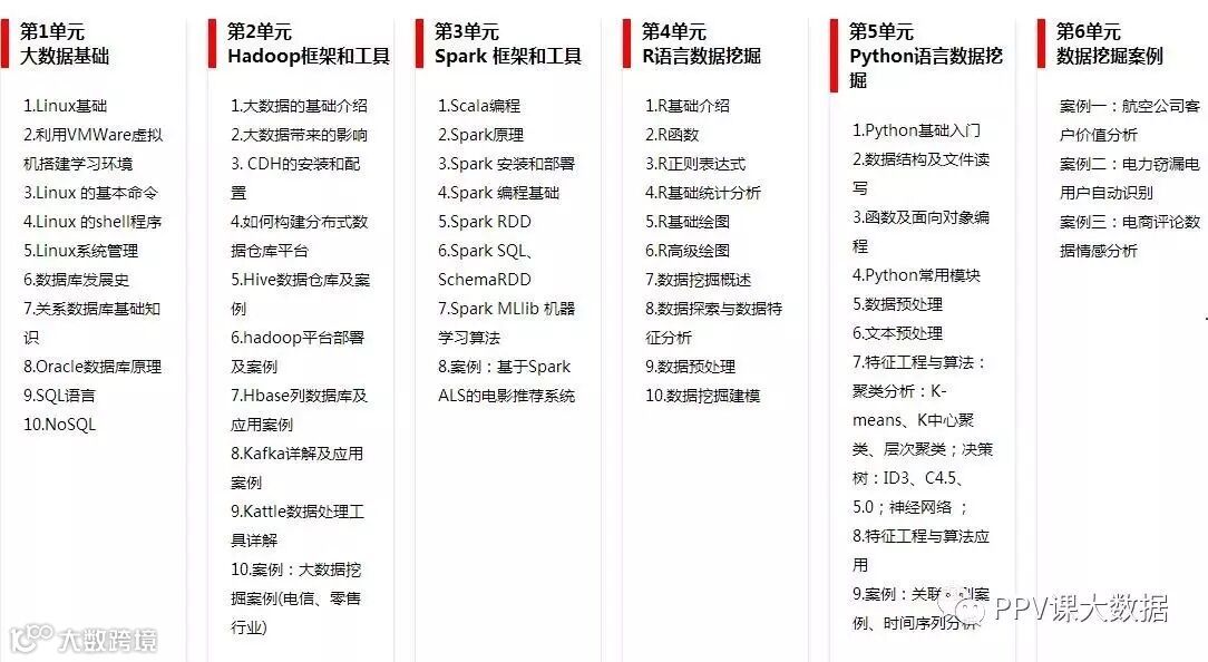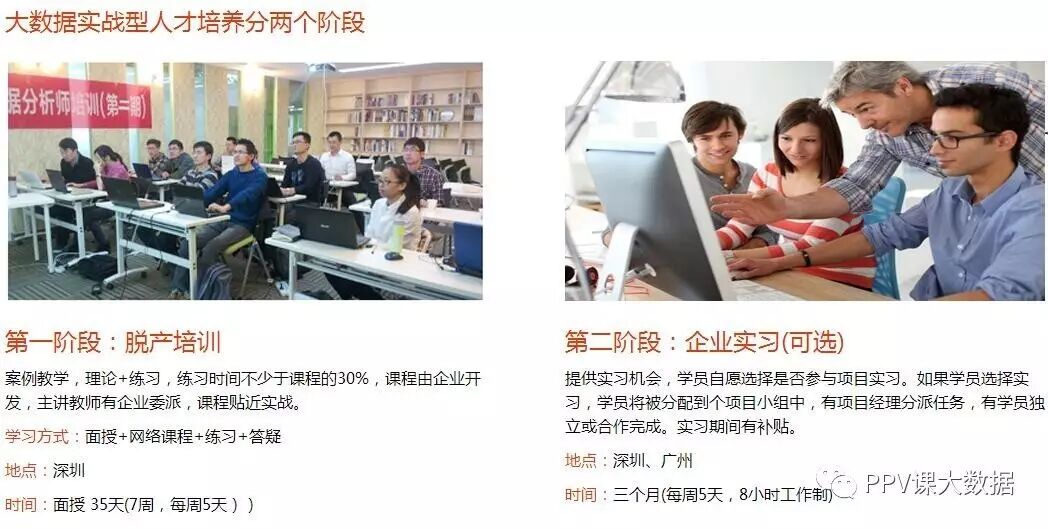 PPV课推出的《大数据-机器学习脱产培训》旨在帮助学员从零基础开始学习,达到工业界对大数据分析师、数据挖掘工程师职位的招聘需求,帮助学员在求职大军中脱颖而出,最终收获心仪的offer。通过理论学习+项目实践,学员将学习最专业以及工业界最炙手可热的数据挖掘相关技术,并动手实践完成三个全真实战项目。企业一线资深专家带路,夯实自己的基础知识并且提高数据分析能力,助你在面试中游刃有余,收获高薪Offer。