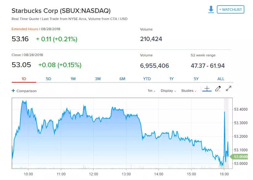 今年以来,星巴克股价一度承压。在公布与雀巢联手后,股价出现小幅收涨。