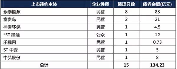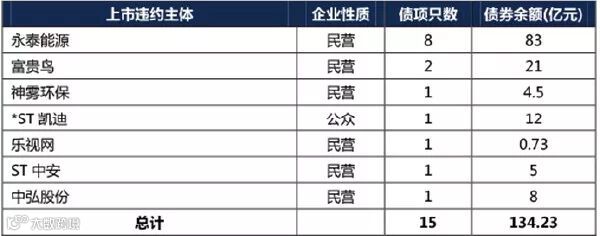 仅从公司债违约来看,今年就爆出7家上市公司的15只债券违约,涉及134.23亿元债券余额。