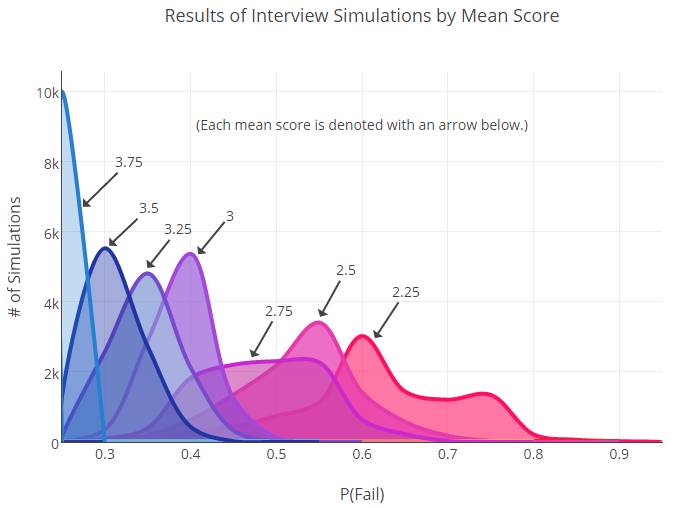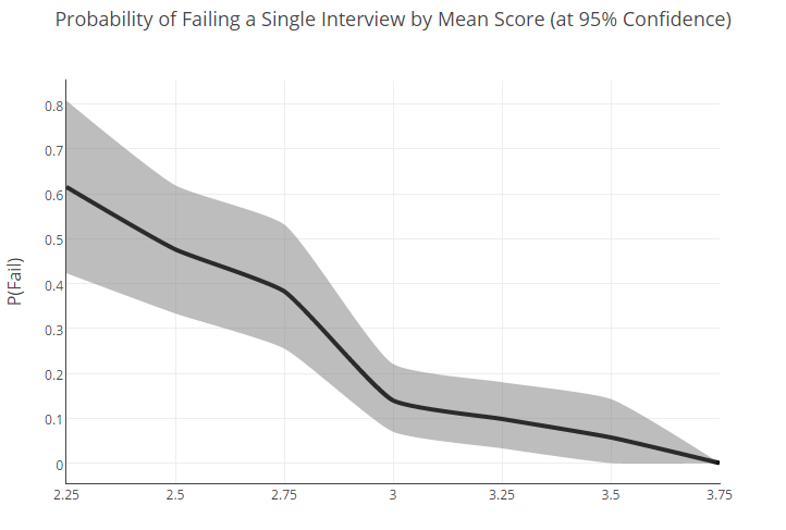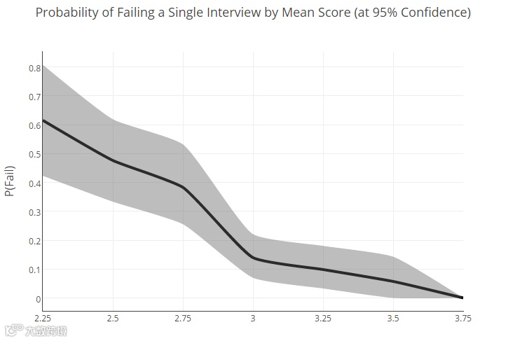 虽然我们可以自信地说,频谱的底端( 2.25 分)与顶端( 3.75 分)之间存在显着的差异,但是对于介于两者之间的面试者来说,差异还是很不明显的。