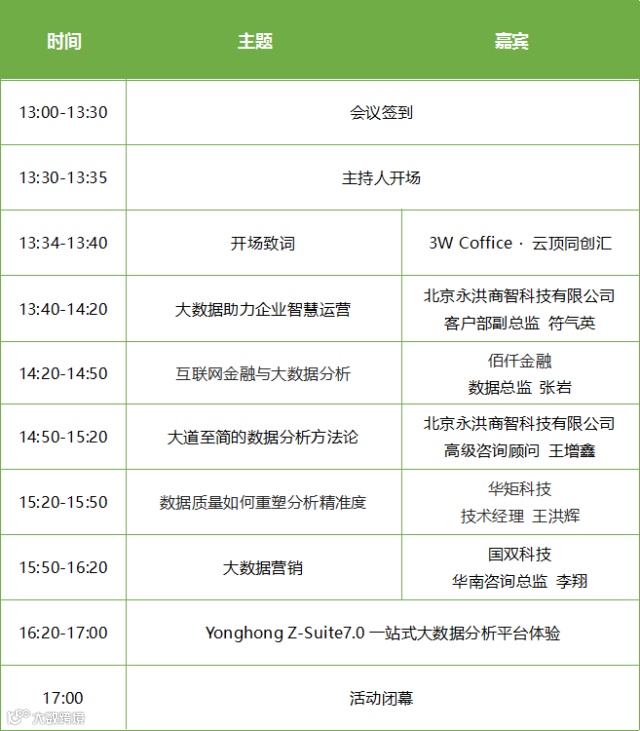 主办单位:永洪科技·永洪数据科学研究院 3W Coffice · 云顶同创汇