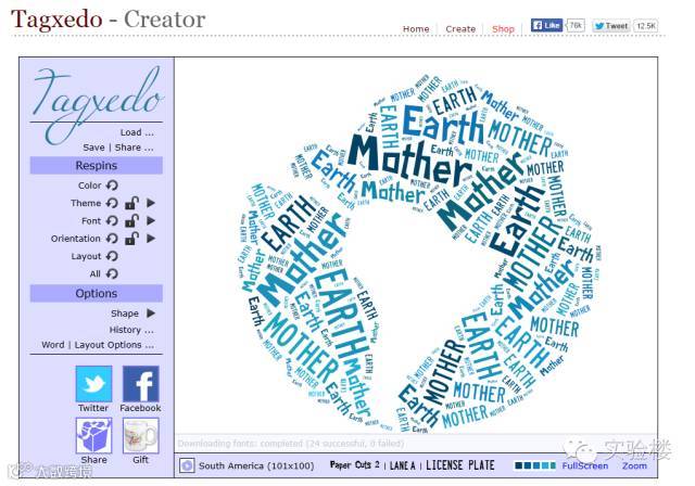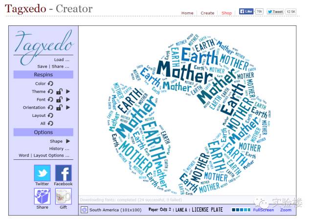 Tagxedo 是一款简单的词云生成器。对于任意文本,都可以将单词提取出来,并根据其出现的频率调整单词的大小。