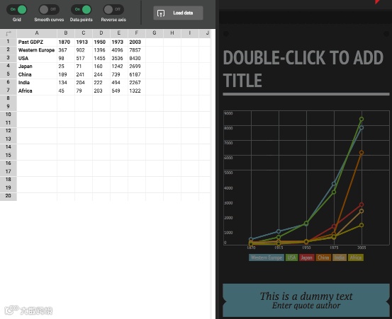 在Infogr.am网站中,你可以使用30多种图形和6种主题创建互动和可嵌入的图表。