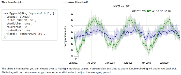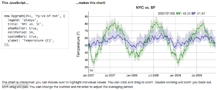 dygraphs是个开源的Javascript图表库,通过调用接口,用户可以直接把大型数据集制作成任何想要的形式。