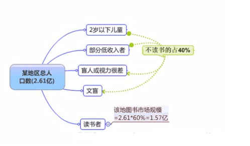思路:已知总人数,若能估算出读书者所占比例,则可估算出图书市场规模。