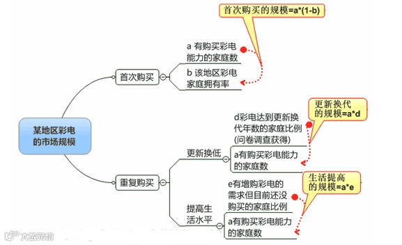 故:某地区彩电的市场规模=首次购买的市场规模+更新换代的市场规模+提高生活水平的市场规模