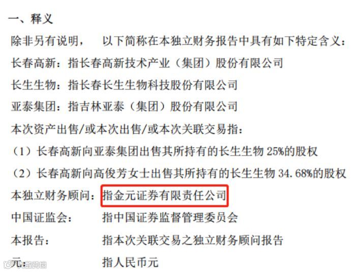 金元证券作为长春高新的独立财务顾问,其职责不仅是确保财务数据的真实性,关联交易的合法、合规性以及是否符合长春高新及全体股东之利益,也要由独立财务顾问负责。