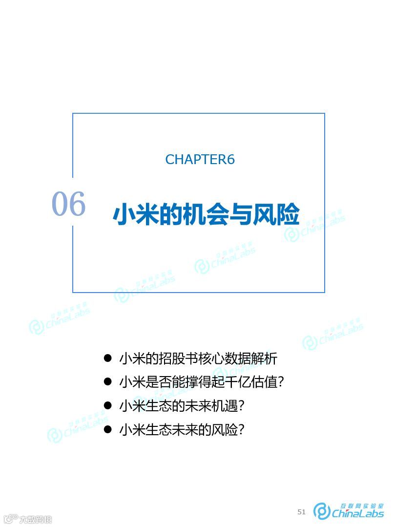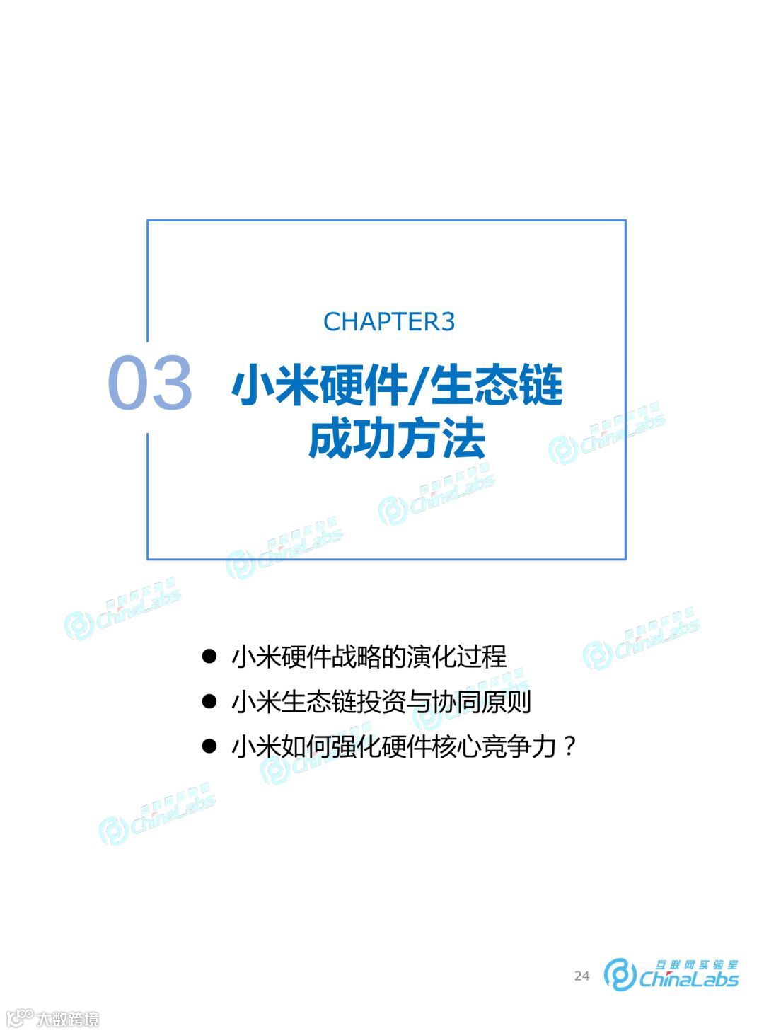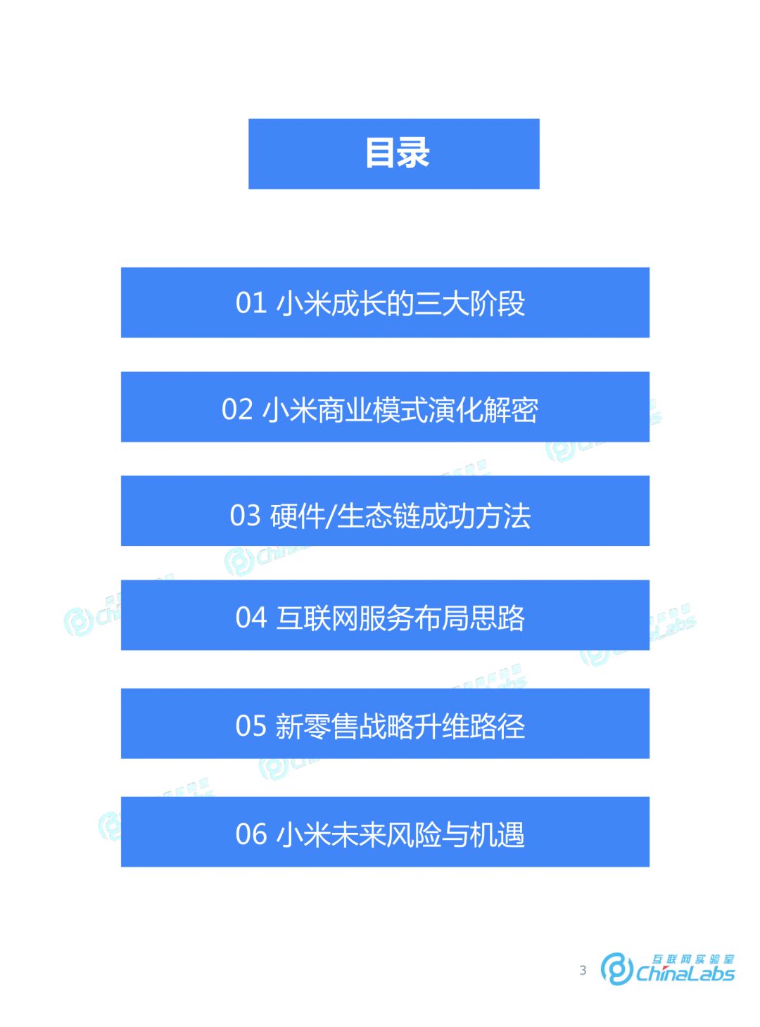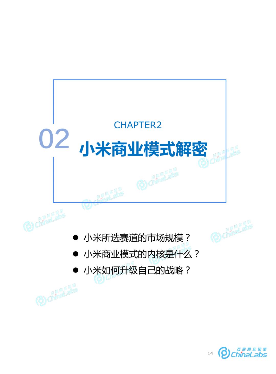 本份报告全方位呈现小米成长成功背后的故事与方法论,并预测小米生态未来的6大机会与6大风险,希望能为看到本报告的读者带来可借鉴的经验或触发一次思考。