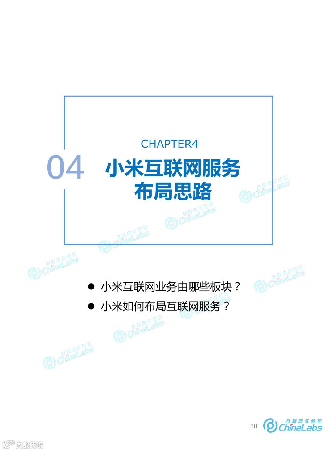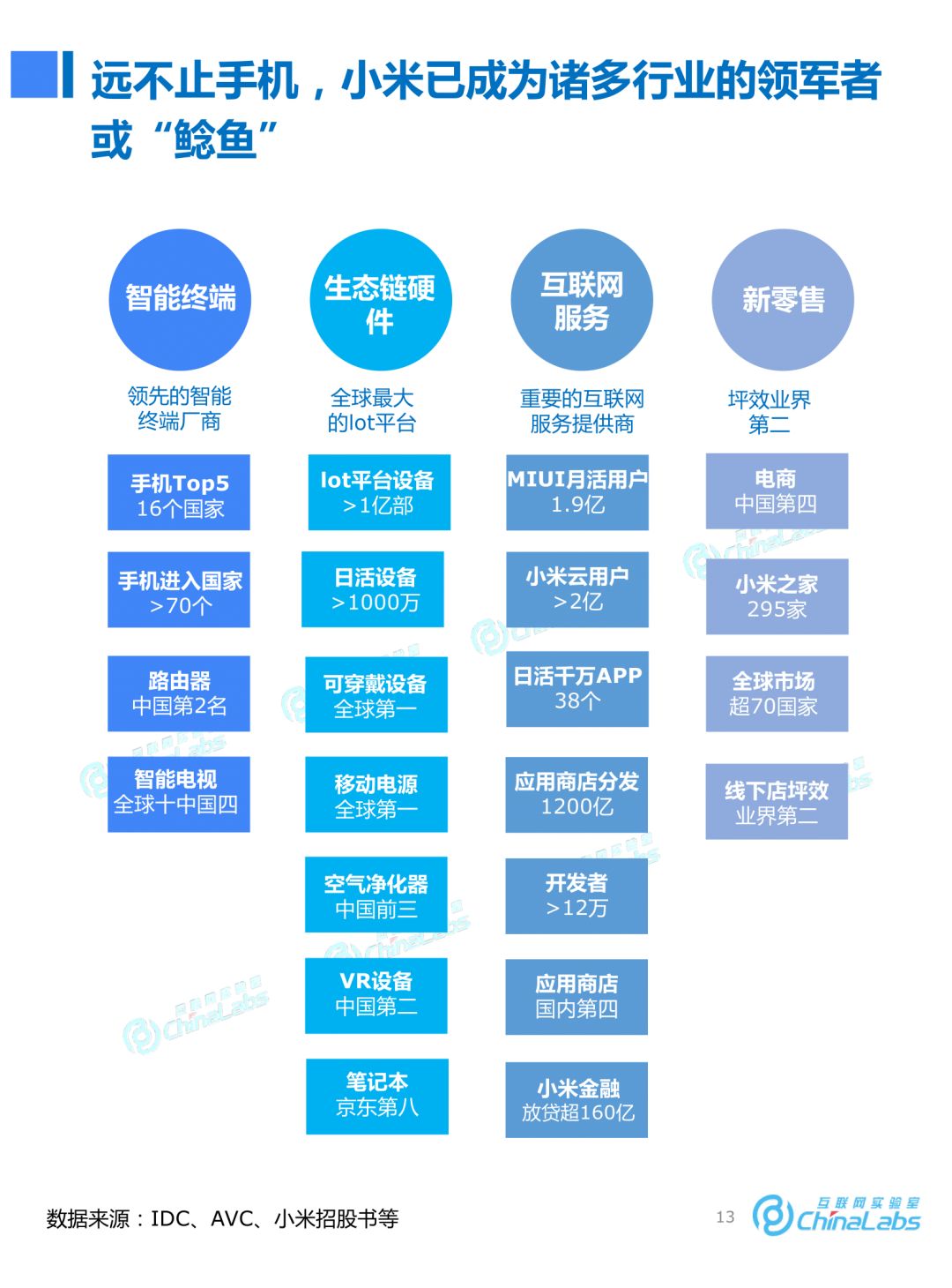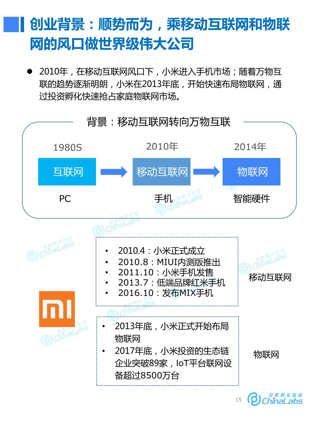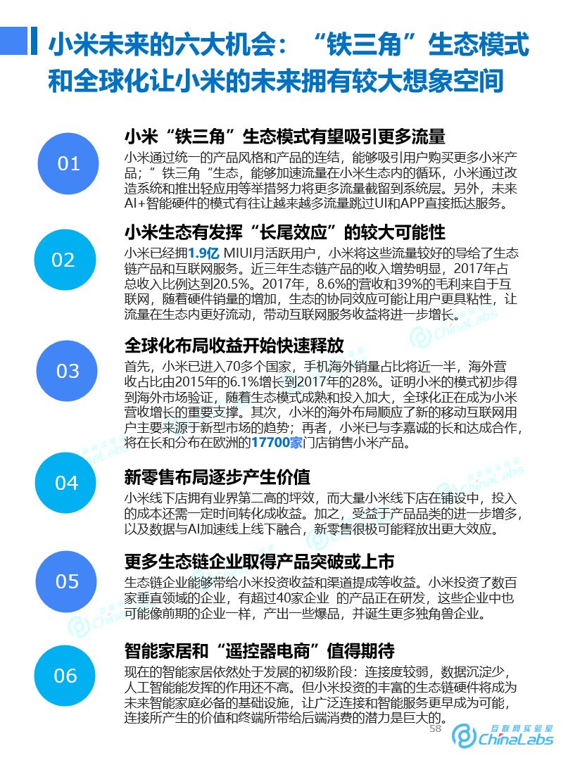 本份报告全方位呈现小米成长成功背后的故事与方法论,并预测小米生态未来的6大机会与6大风险,希望能为看到本报告的读者带来可借鉴的经验或触发一次思考。
