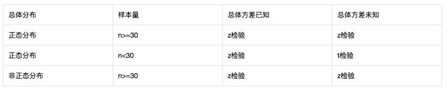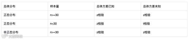 不同的样本量和总体方差使用的检验方法不同,下图是不同情况下使用的检验方法。样本是否大于小于30是因为中心极限定理,在大样本量,且总体方差未知时,使用t检验还是z检验均可,因为t分布近似于z分布。我们使用z检验做双样本均值。