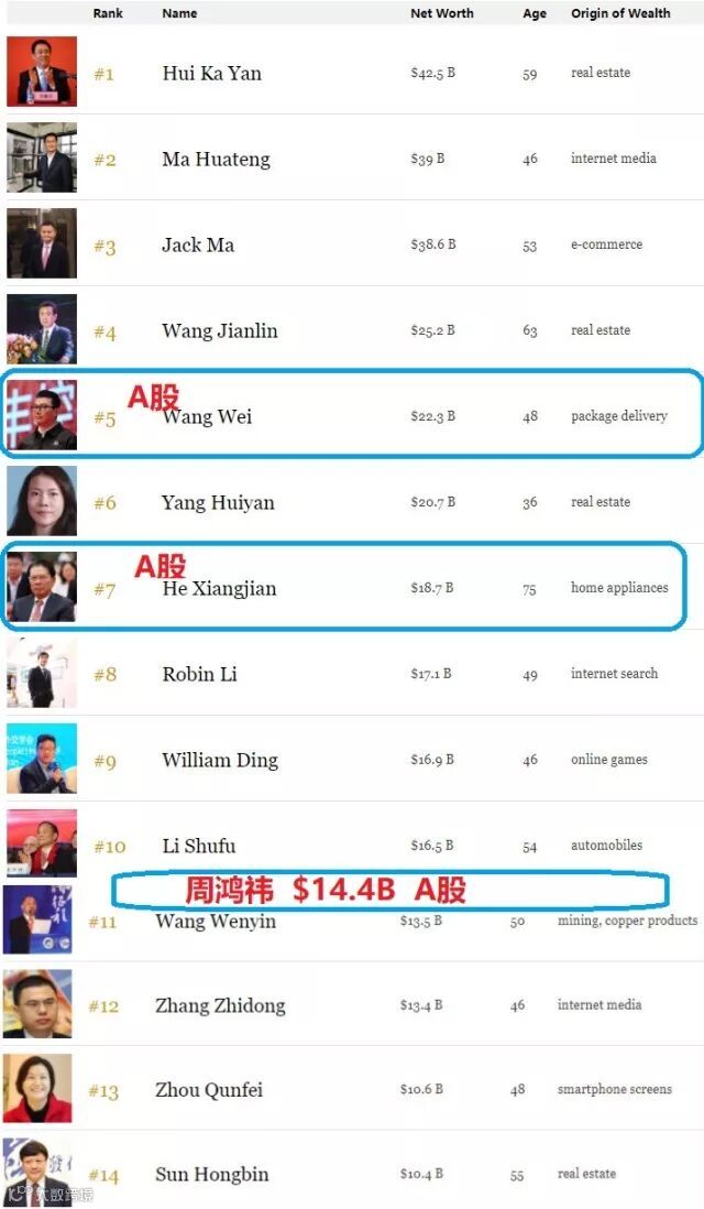 而如果只算纯A股富豪,周鸿祎的排名仅次于顺丰控股老板王卫和美的集团老板的何享健。