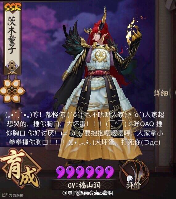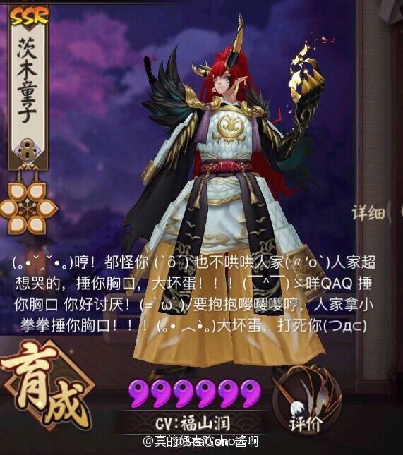 更何况抽到SSR的概率只有0.5%(据说)。茨木妖刀大天狗,你有他有我没有。