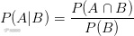 这个公式依旧可以用文氏图解释。橙色圆表示事件B已经发生,如果想要知道B已经发生的情况下事件A发生的概率,则只能考虑橙色圆和蓝色元的交集部分即P(A∩B)。此时P(A∩B) 除以P(B)即给定条件B下事件A发生的概率。