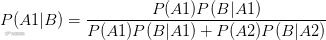 P(A1)代表是真实患者的概率,P(A2)代表是健康人群的概率,P(B)代表试纸查出患者的概率。于是得出: