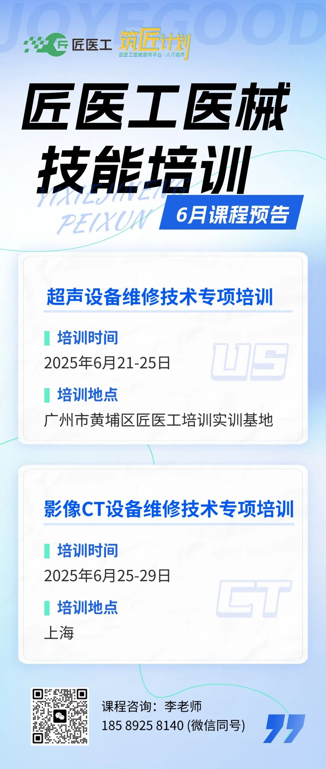 ✅ 影像 CT 设备维修技能专项培训:6月25-29日