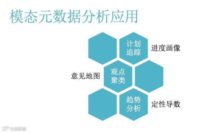 它能怎么用呢?比如说这个公司在不同的时间,会承诺未来做一些事情,它到底做的怎么样呢?这个可以给进度,通过计划最终给进度划线,什么时候哪些东西的未然成为已然了,我们可以看它实现的情况。还有就是观点聚类,那也就是说根据大家对同一件事情打的不同的折扣,我们可以给这样一个人群的观点的分布画像,让他知道谁是站在左边,谁是站在右边,谁是站在中间。我们还可以对趋势进行一些定性导数的分析。