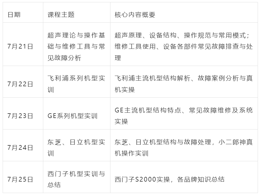 4. 名师零距离:由长期深耕超声维保售后服务一线的实战导师授课,将维修案例拆解为实战方法论,告别纸上谈兵,让你在课堂直接掌握医院、企业都亟需的“硬通货”技能。