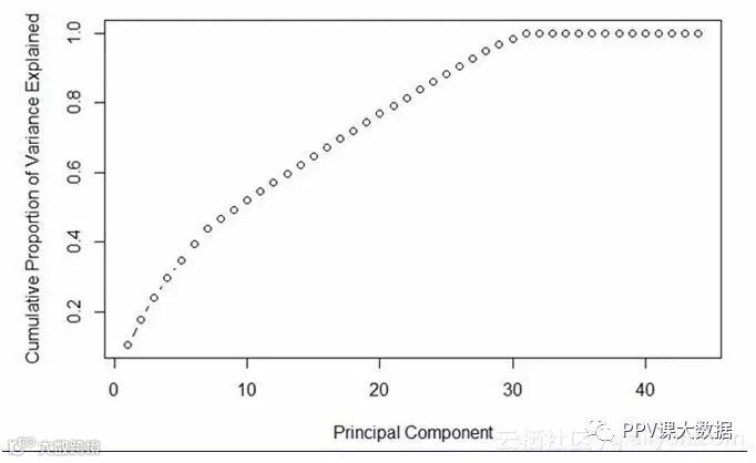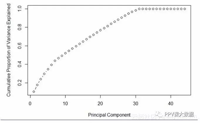 可以在上图中看到,主成分的数量为30时以最小的数量得到最大的方差。