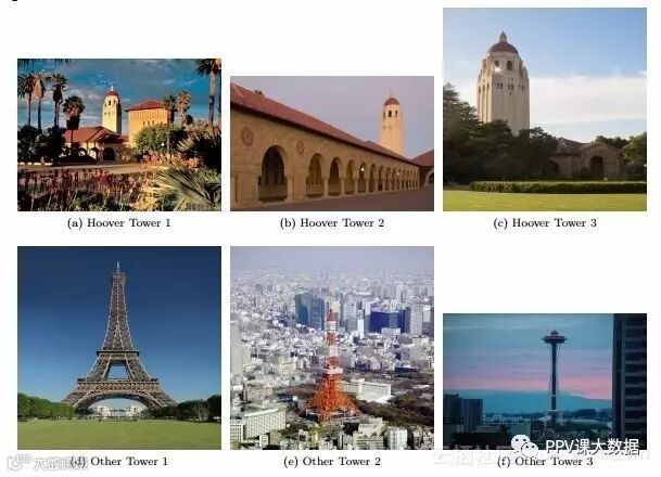 给定的数据集包括“胡佛塔”和其他一些塔的图像。现在要使用PCA(特征脸)和最近邻方法来构建一个分类器,可以预测新图像是否显示“胡佛塔”。该图给出了输入的训练图像样本