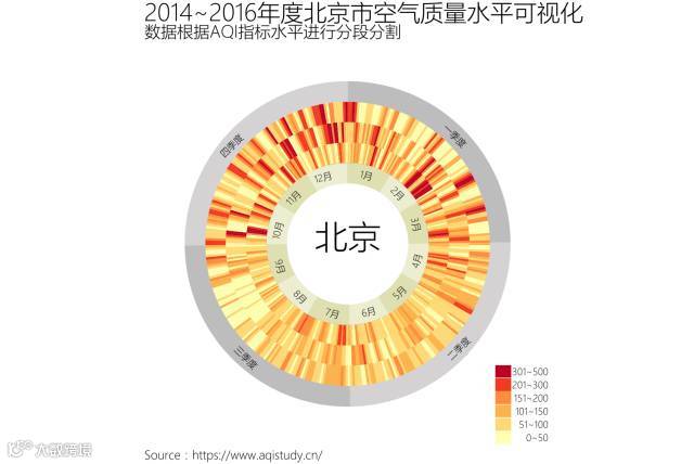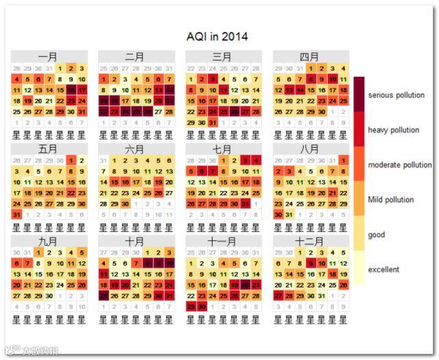 制作北京市 2014~2016三年度历史空气质量数据年度日历热图