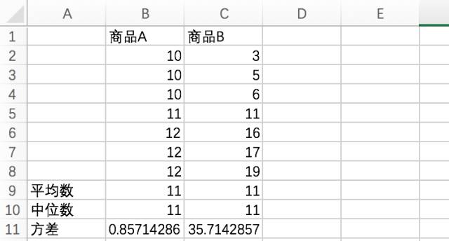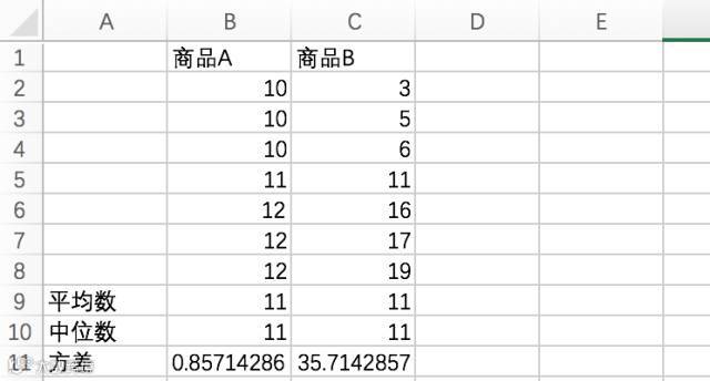 它们的平均数一样,中位数也一样,可它们的真实情况呢?当然不。作为商品,我们更喜欢销量稳定的。