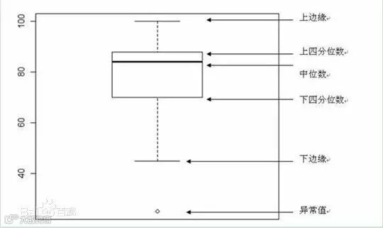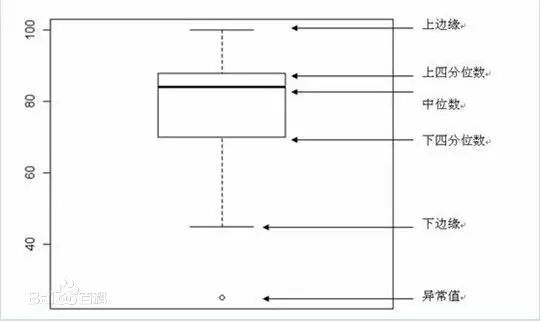 箱线图的上下边缘分别是最大值和最小值(实际不是,这里为了方便,先这样理解),箱体的上下边界则是25%分位数和75分位数。箱内横线是中位数。异常值是箱线边缘外的数值,需要直接排除。
