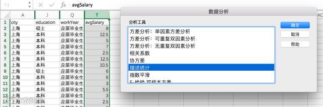在Excel中,有一个重要的工具叫数据分析库(部分Excel版本需要安装,自行搜索),里面封装了大量的统计工具。