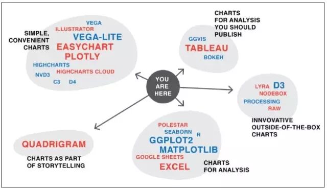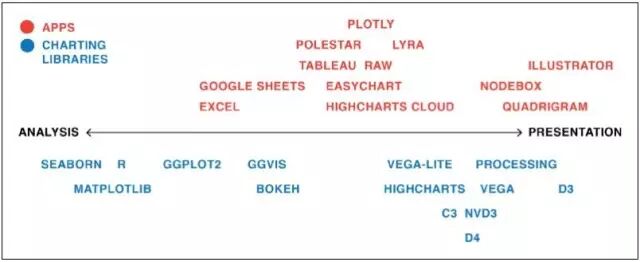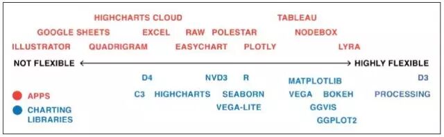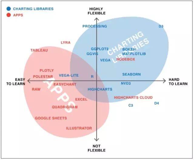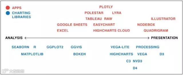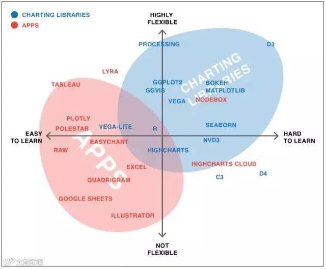 你一般会选择哪种工具来做数据可视化?Lisa Charlotte Rost从去年五月开始尝试了24种工具或语言来画一张气泡图,经过半年的学习实践发现没有完美的可视化工具,每个工具都有各自的优缺点,但是对于某些领域目的,还是有比较推荐的可视化工具。