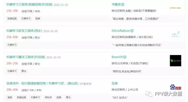 目前懂机器学习算法的人才却少之又少,物以稀为贵,致使这个行业的工资奇高,这是拉勾网上机器学习相关岗位的工资待遇,大家可以随意感受一下~