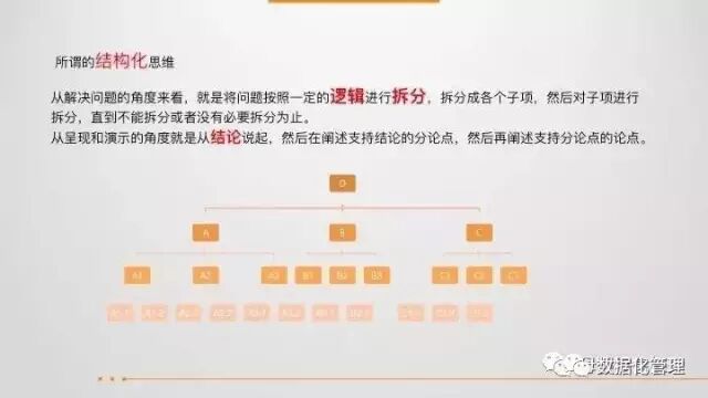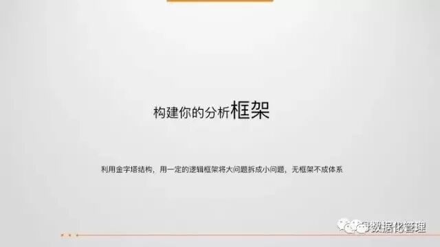 利用金字塔结构、用一定的逻辑框架将大问题拆成小问题,无框架不成体系。