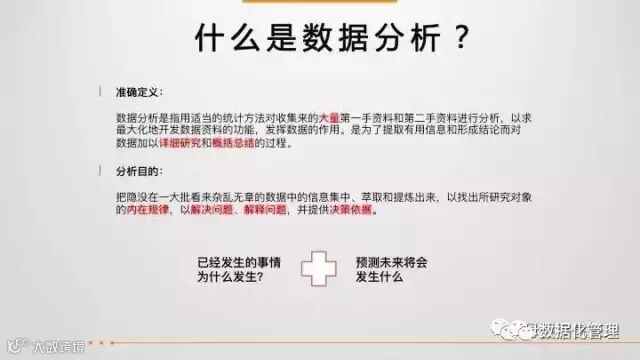 数据分析就是指用适用的统计方法收集来的大量一手资料和二手资料进行分析,以求最大化地开发数据资料的功能,发挥数据的作用。是为了提取有用信息和形成结论而对数据加以详细研究和概括总结的过程。