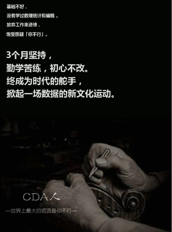 士别三日,当刮目相待,三个月后,希望大家成为一名真正的CDA数据分析师,就像当年的黄埔军校一样,今日你以 CDA 为荣,明日 CDA 以你为荣。无论你日后在何方,请记住“背后有我们,CDA 一家人”!