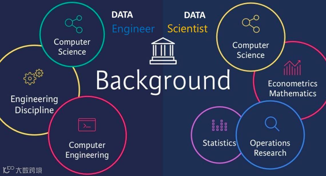 数据科学家和数据工程师在教育背景上有一些共同点——计算机科学。这个专业对两者都是十分热门的选择。当然,你也会看到数据科学家经常研究计量经济学,数学,统计和运营研究。他们通常比数据工程师多一点商业头脑。同时你也经常看到数据工程师也拥有工程背景,而且他们计算机工程方面也受过一些超前教育。
