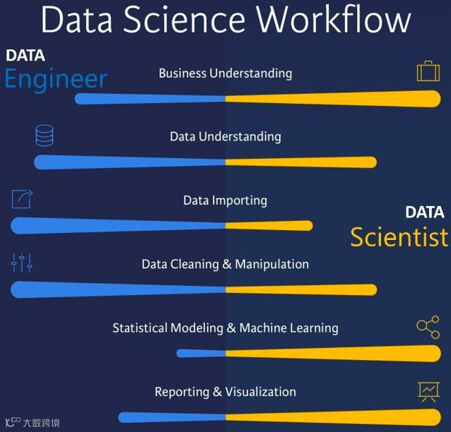 当然,双方在工具,语言和软件的区别需要具体看所处的工作环境。在某些特定情况下,数据科学和数据工程尝尝紧密相连,有时两者的区别特别小,有时两者甚至可以合并。