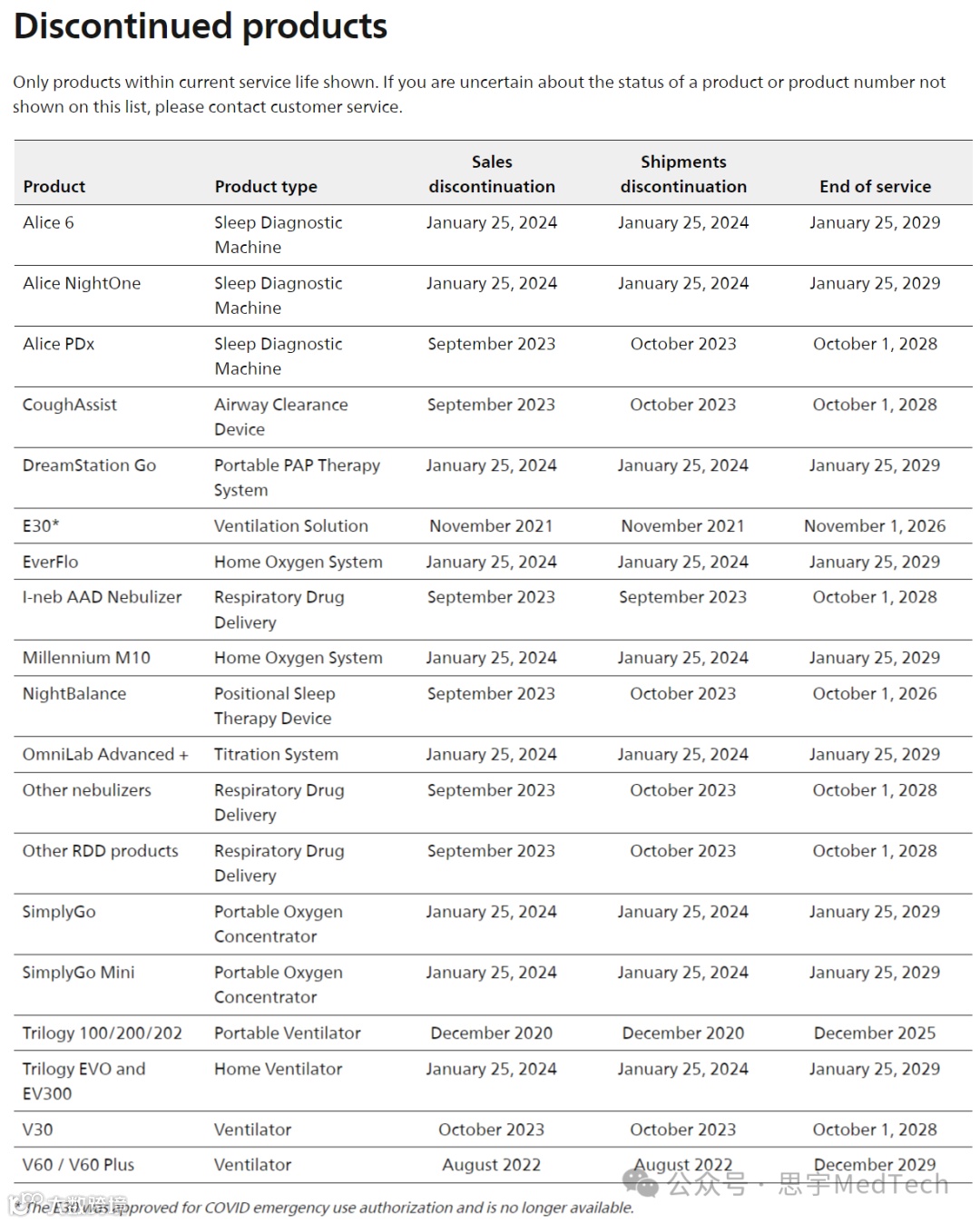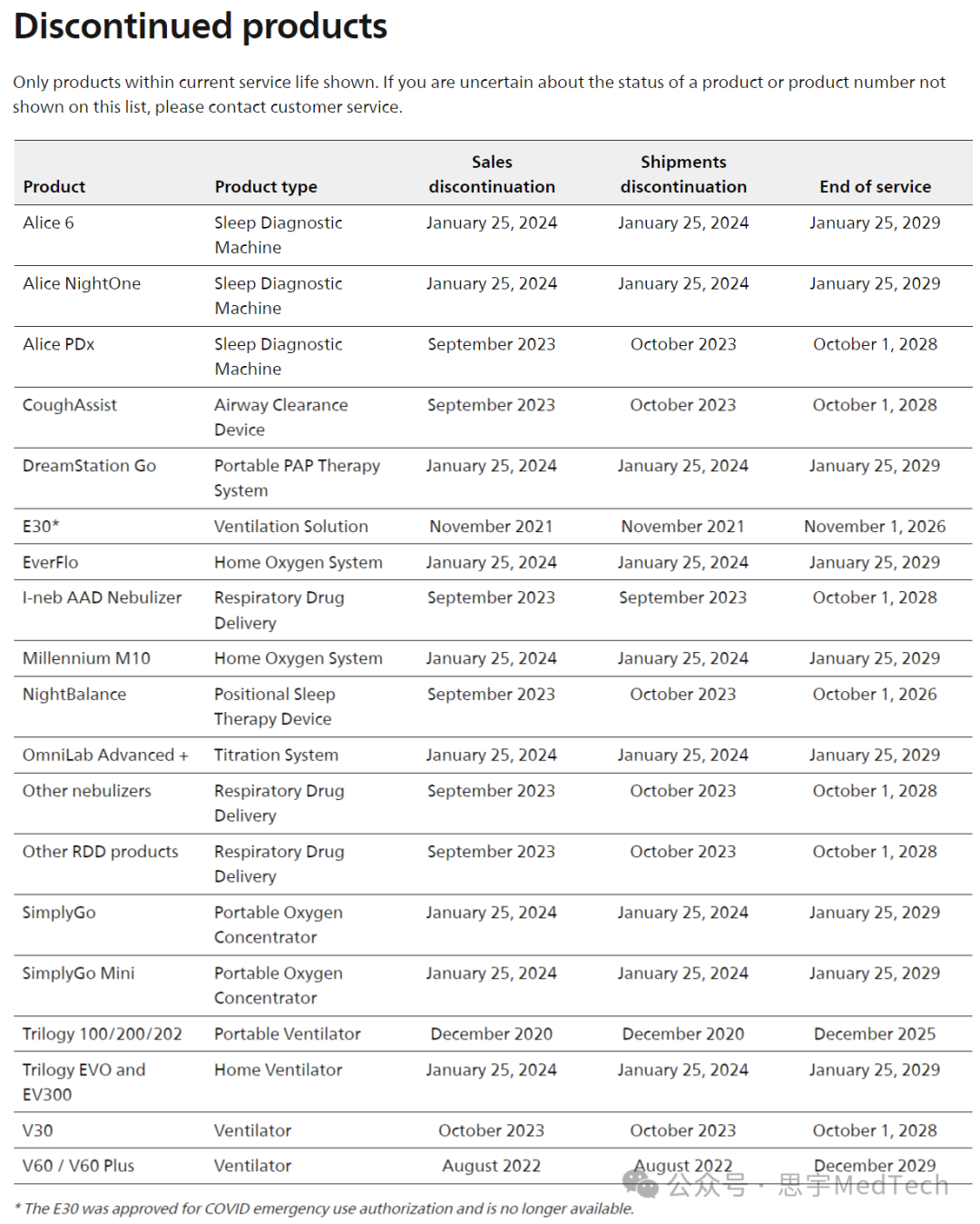 飞利浦在美停止生产的睡眠与呼吸产品列表