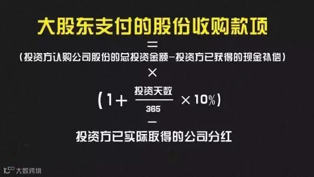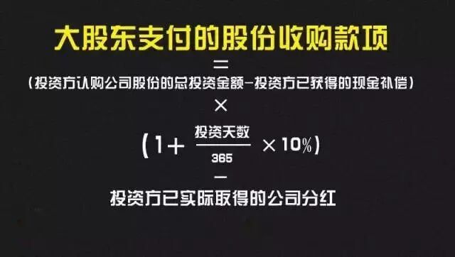 公司或大股东签订此条约后,每年公司的净利润要按PE、VC投资金额的一定比例,优先于其他股东分给PE、VC红利。