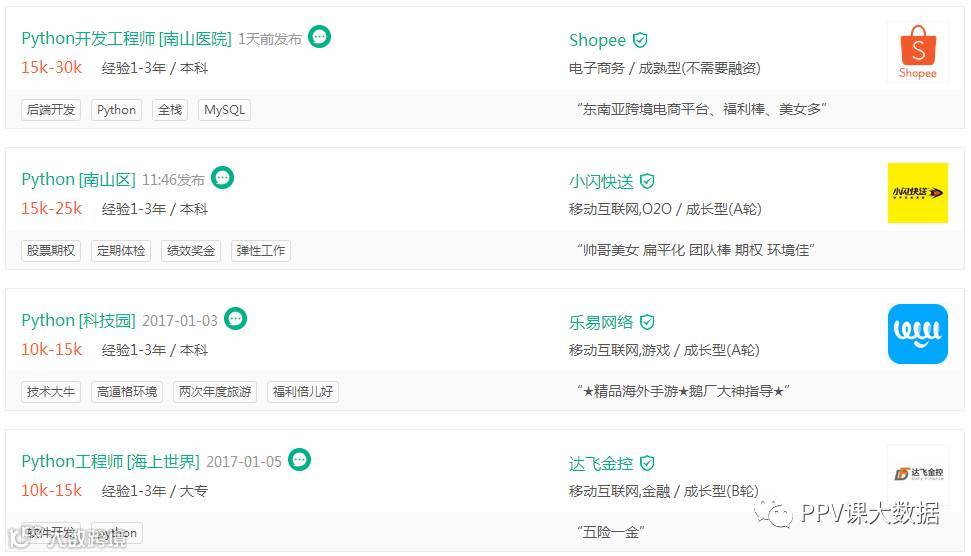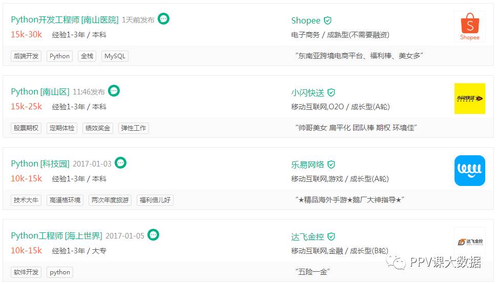 大数据人才在市场需求上还是比较紧张,以下为拉勾网python岗位薪资列表,可以感觉一下: