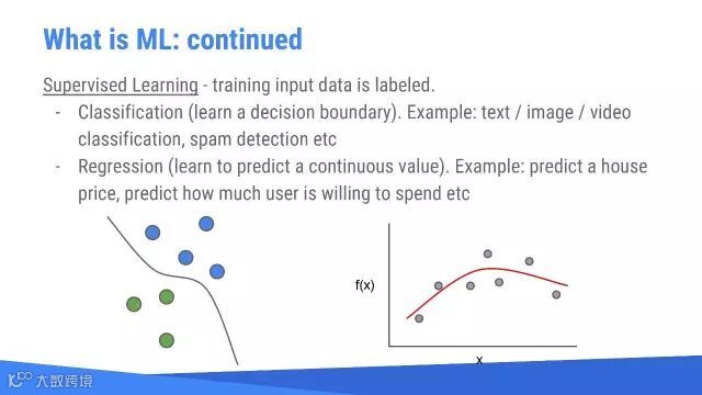 回归(学习预测连续值)。 示例:预测房价,预测用户愿意支出的金额等