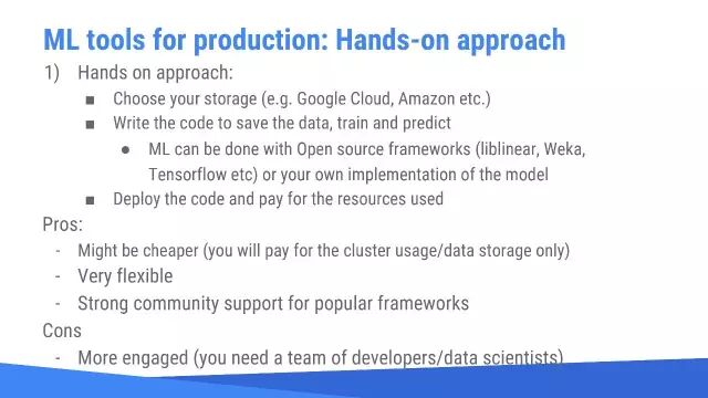 缺点:人力投入多(需要一个开发者/数据科学家的团队)
