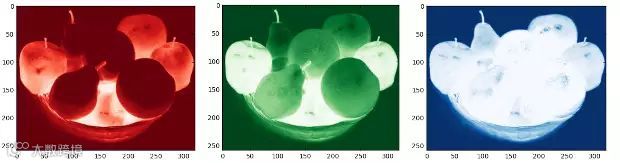 举例来说,可以将任意一张RGB彩色图片表示成一个三阶张量,三个维度分别是图片的高度、宽度和色彩数据。下图如果按照RGB三原色表示,就可以拆分为三张红色、绿色和蓝色的灰度图片(见下图中间的三张不同突破),再将这张图用张量表示出来,就是最下方的那张表格。